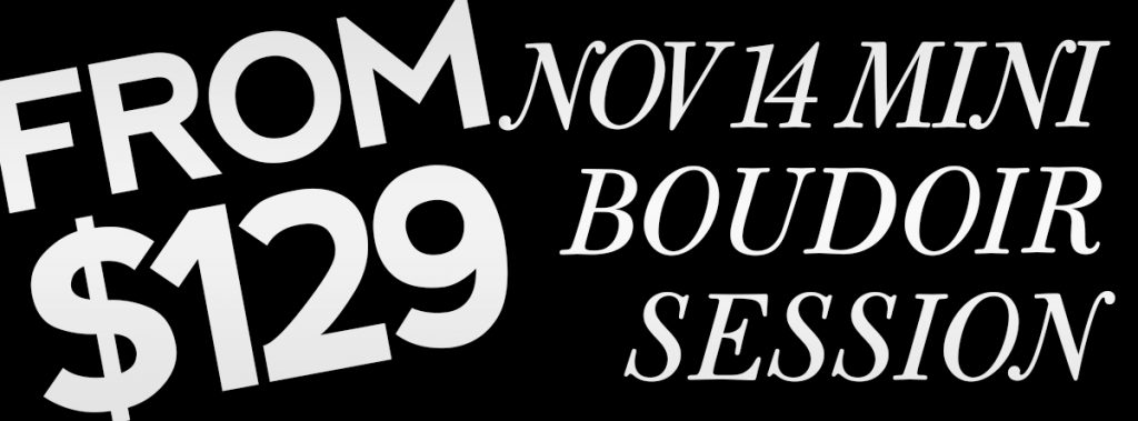 Come get sexy and save for a limited time only! Our boudoir mini session is only $129 on Nov 14, but we have extremely limited spots available! Discounted images available on the day of the shoot. Buy only what you want!
